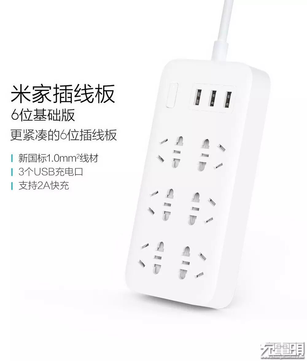 众所周知插线板新国标即将于2017年4月份强制执行,这次众筹的米家插线板6位基础版就将电源线升级到截面1mm²线材,可以承受更大的电流,发热更低更安全。除此之外此前小米插线板上的75N独立安全保护门、一体铜带工艺、防滑脚垫等安全配置也继承了下来。项目方表示这款插线板整机了符合GB 2099.7-2015标准并通过了3C认证。