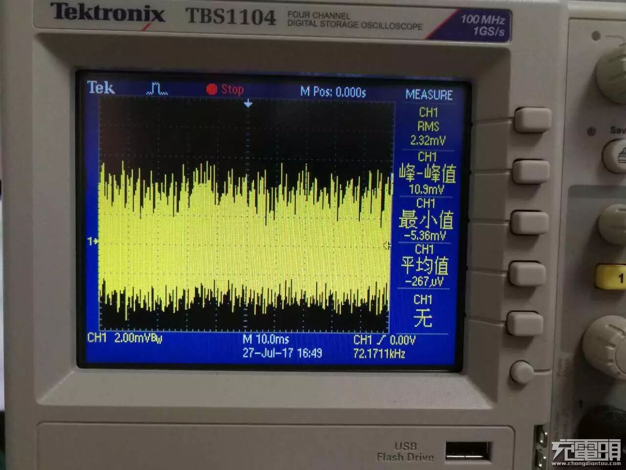 从中可以看出,Z17的电压增加,完全遵从PPS的协议,每20mV一个步进。这对电源的稳定性提出了很高的要求。因为通常情况下,电源的输出纹波很可能大于100mV。让我们来专门测试一下AnwWatt转接器的输出纹波。