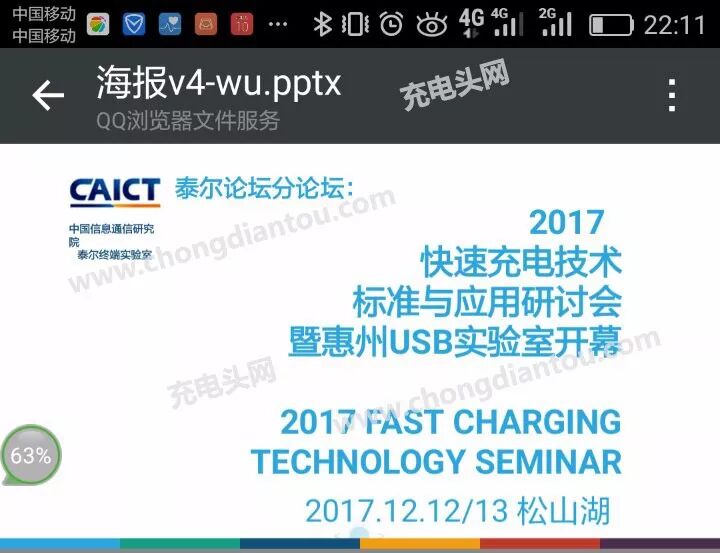今日,行业知情人士向充电头网透露了12月12日-13日在东莞松山湖举办的《2017快速充电技术标准与应用研讨会》(2017 FAST CHARGING TECHNOLOGY SEMINAR)演讲PPT幻灯片。