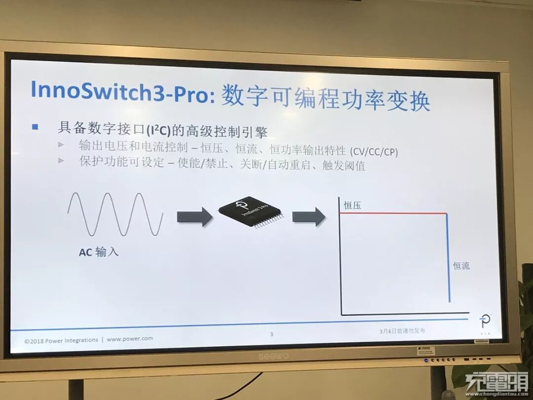 近日,致力于高能效电源转换的高压集成电路业界的领导者Power Integrations公司(纳斯达克股票代号:POWI)发布了一款数字可编程/可设定/可调整的功率变换解决方案InnoSwitch3-Pro。以下是充电头网带回来的现场PPT分享: