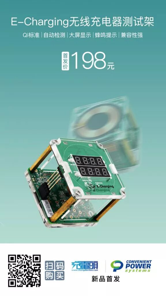近日,E-Charging易冲无线最近推出一款无线充电器测试架,该测试工具采用易冲无线提供的基于电磁感应技术的无线充电接收端方案,符合WPC无线充电标准,可提供最大10W的接收功率;具有兼容性强、反应灵敏、自动检测等多种功能。可广泛应用于无线充电器在研发阶段的功能性检测以及工厂量产出货时的老化测试等场景。