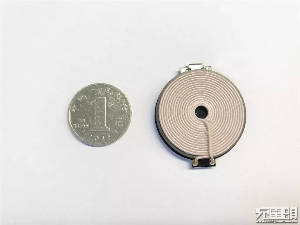 TWS耳机专用无线充发射PCBA模组,仅有一枚一元硬币大小,之所以能做到这么小,是因为它采用了高集成SoC芯片。具体型号上是易冲无线EC8010芯片,它是一颗5W的SoC芯片,具备集成度高、外围元件少、方案成本低、产品一致性高等优点。