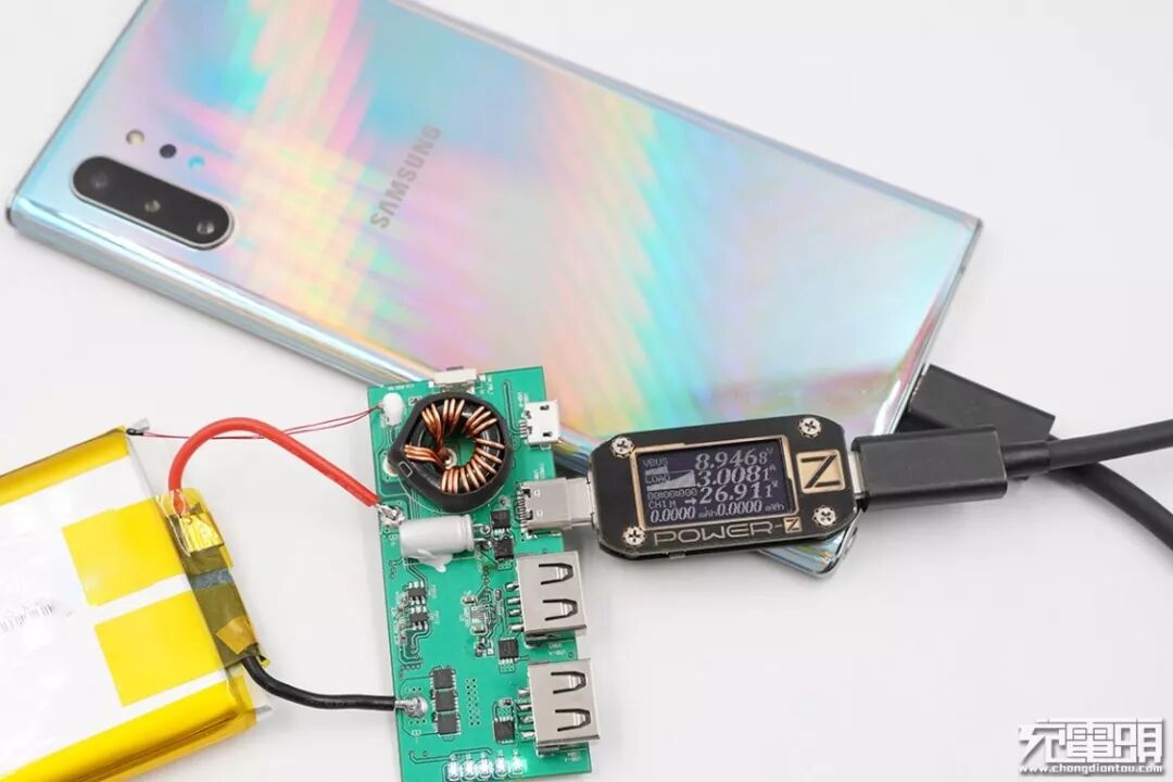 使用该移动电源DEMO给三星Note 10+充电,POWER-Z KM001C显示电压为8.94V,电流约为3A,充电功率约为26.91W,成功开启PPS快充模式。
