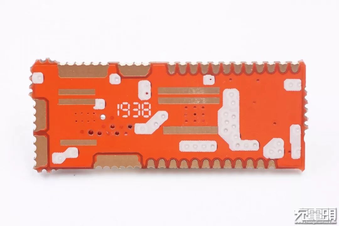模组背面没有任何元器件。也就是说,该模组相当于一颗集成电源管理、升降压控制以及快充协议识别的SoC芯片。但是相比常规的18W移动电源SoC而言,其不仅可将充电功率提升至30W,而且效率更高、温升控制更好。