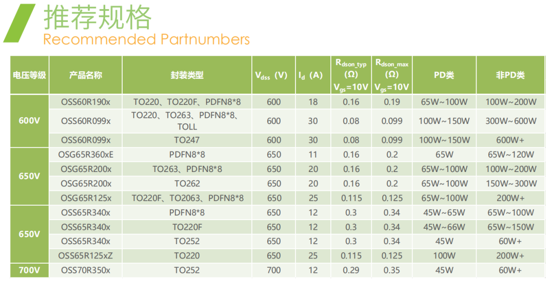 超级硅系列已有量产规格包含耐压600、650和700V三档,最低Rdson为80mR,静态电流30A,对应功率段50-600W。