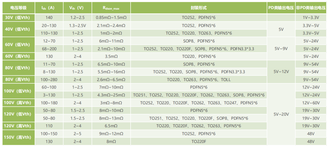 东微半导体还有全系列中低压高速器件,适用于不同快充方案的同步整流输出。