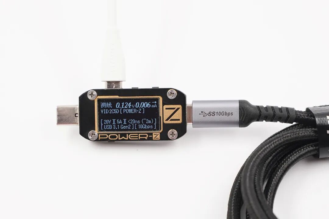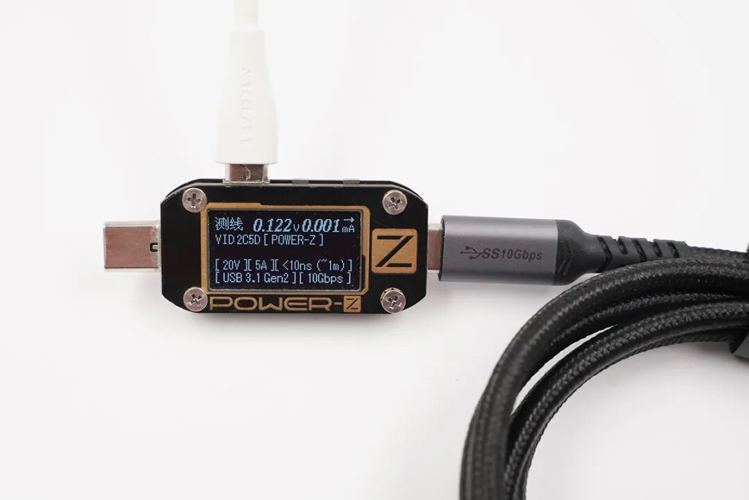检测青春版1米USB-C全功能同轴线,同样显示支持20V/5A,100W功率传输,数据方面为USB3.1 Gen2,10Gbps。