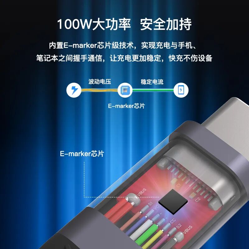 同轴科技推出的这5款线缆均内置高性能E-Marker芯片,除了支持100W USB PD快充之外,其数据传输速度高达10Gbps,支持4K高清视频,使用该规格的线缆传输高清电影仅需3秒;集USB-C、HDMI、DP、VGA等众多接口的功能于一身。