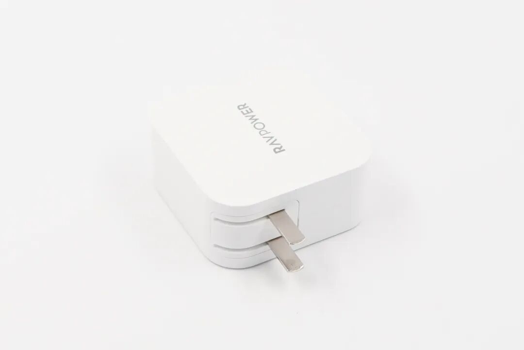 RAVPOWER这款充电器沿用典型的圆角方正造型,机身正背面微微弧面凸起,再搭配上可折叠插脚,让产品显得非常小巧,携带起来很方便。此外机身正背面设计有RAVPOWER品牌。
