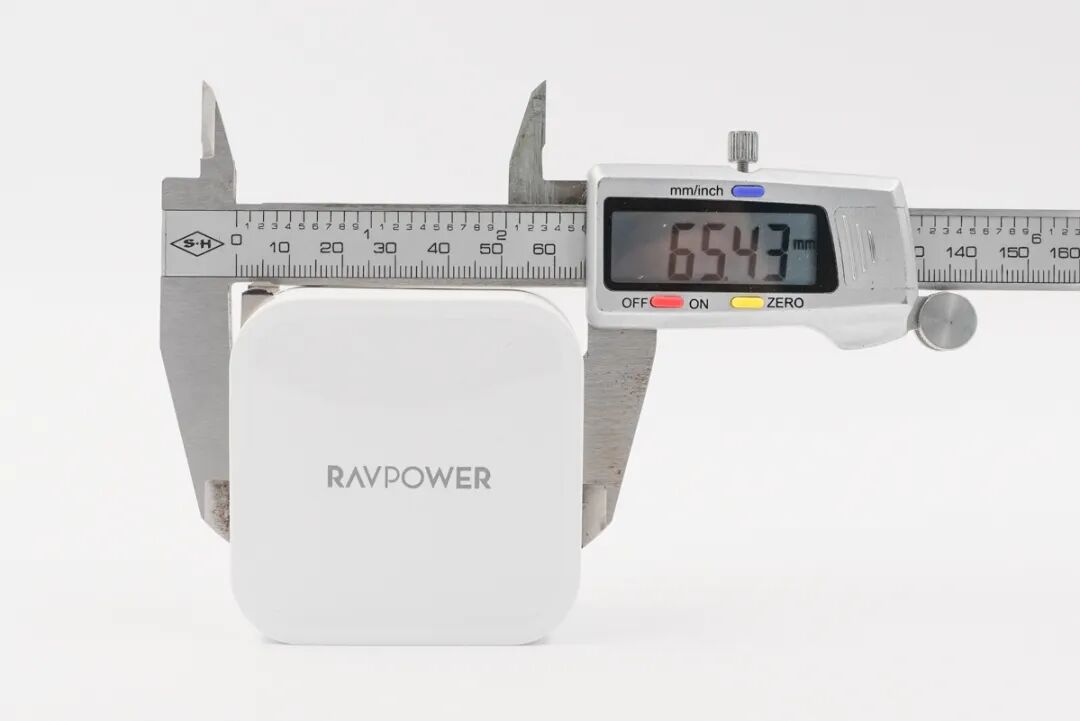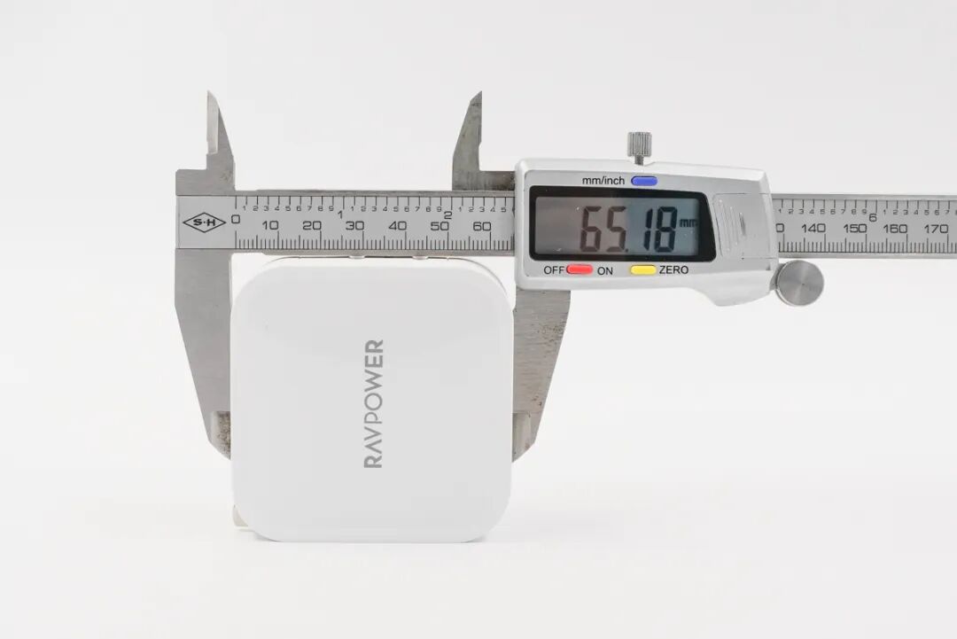 使用游标卡尺实测充电器长65.43mm。