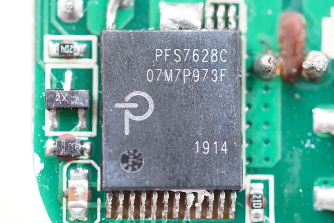 PI的PFC控制器PFS7628,用于将整流滤波后的电压升压,进行主动功率因数校正,内部集成600V高压MOS和控制器,集成度高,提供稳定,高效的功率因数补偿,可提供110W输出功率。