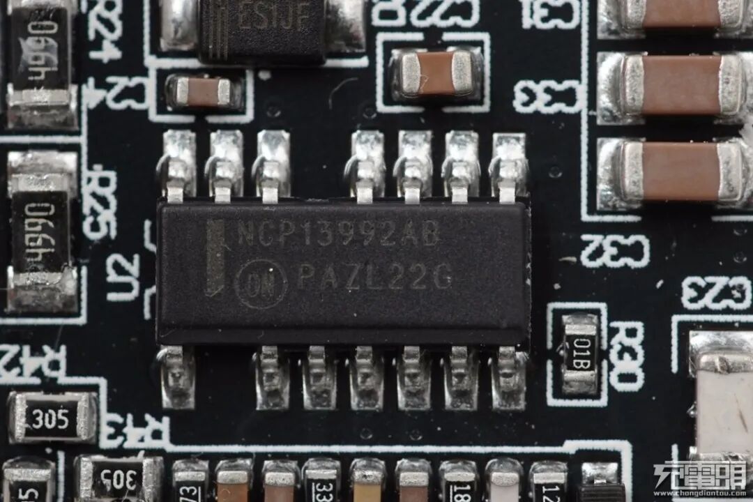 PWM主控芯片采用安森美NCP13992,LLC架构,固定电压输出,转换效率更高。