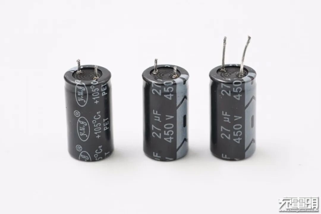 三颗昱光电解电容规格均为450V 27μF,尺寸10*18mm。工作温度范围:-40℃~105℃,具备抗雷击、耐纹波、高频低阻等优势,可以为快充优化产品结构、提升组装工艺发挥作用。