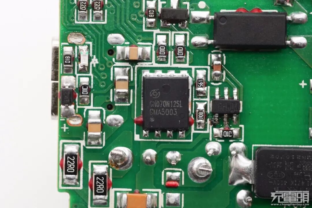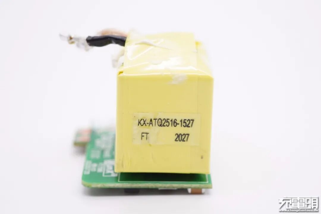 主板次级侧上设有固态电容和协议IC等元器件,固态电容外有绝缘套管与初级隔离。