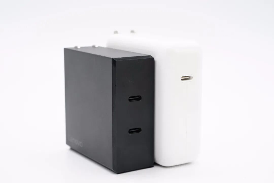 和苹果61W充电器直观对比,联想这款充电器还要更小一些。