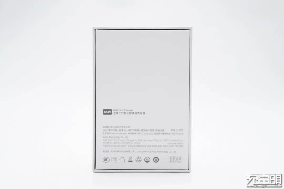 背面是“GaN”字样,整体设计表明这是努比亚新一代“氘锋系列”氮化镓充电器。