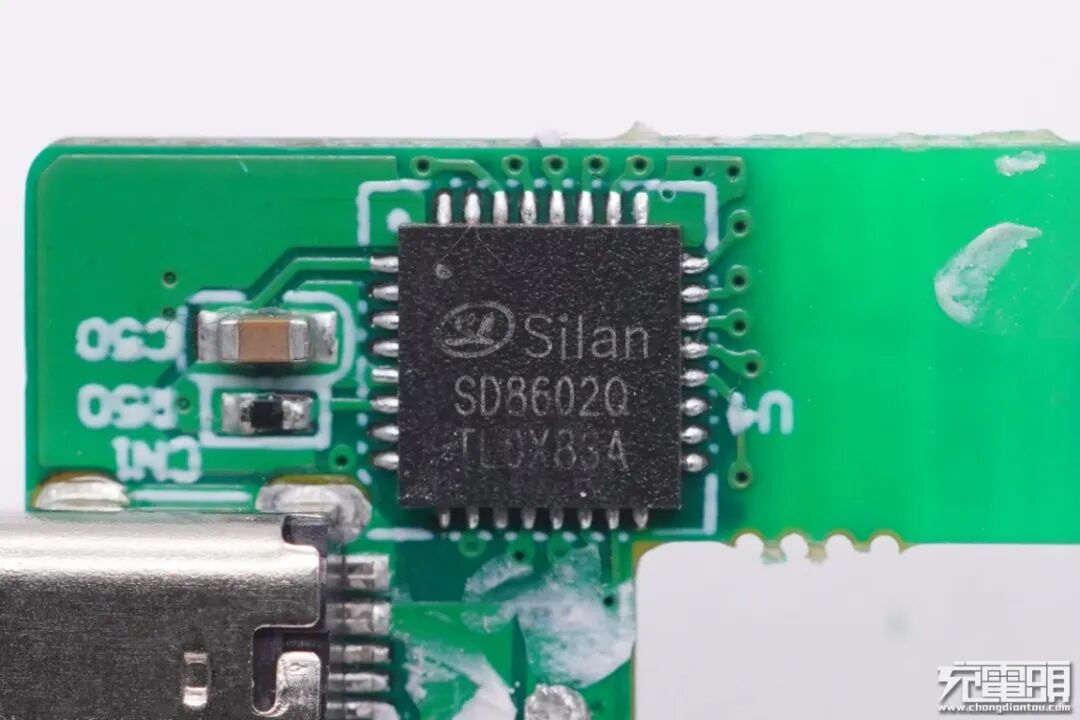此外充电器开关电源采用士兰微SDH8666QS+MK91736高集成方案,输出端协议芯片采用士兰微SD8602,输出采用固态电容滤波,整体用料主流。