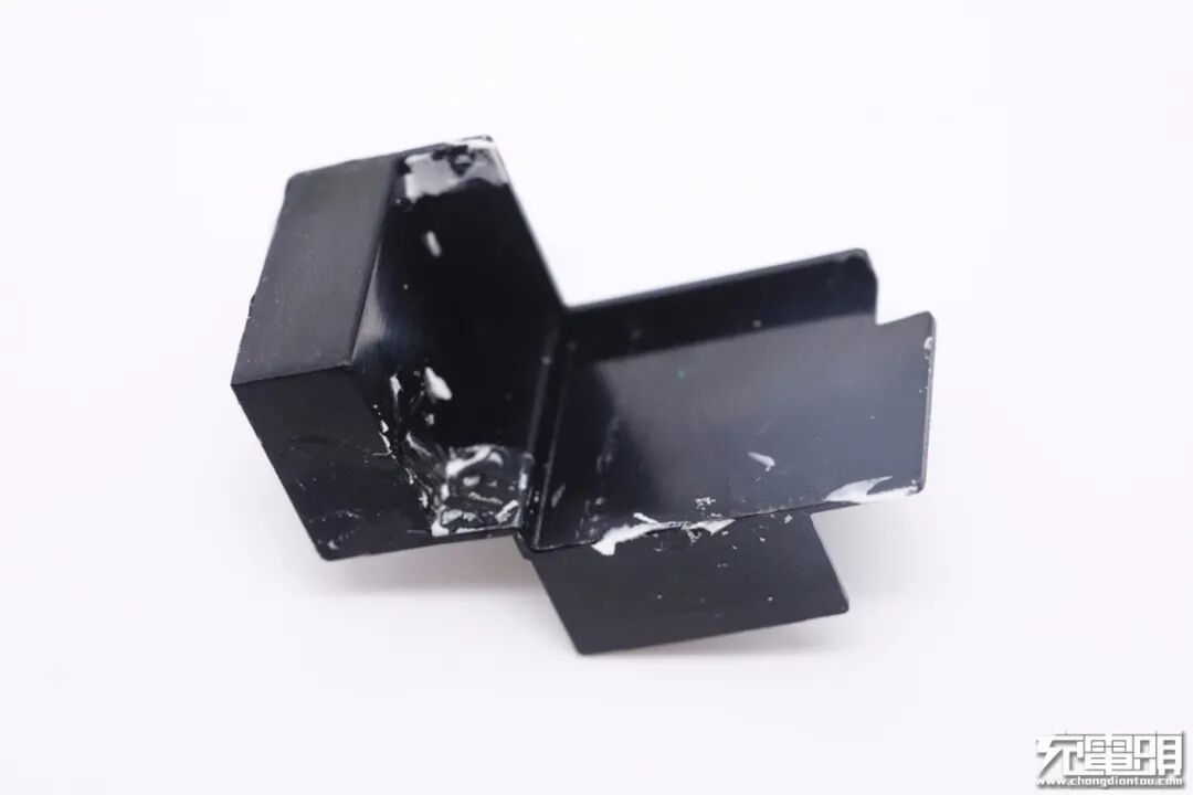充电器配有大块黄铜散热片以及绝缘隔离板,散热片通过卡扣和焊接方式进行固定。