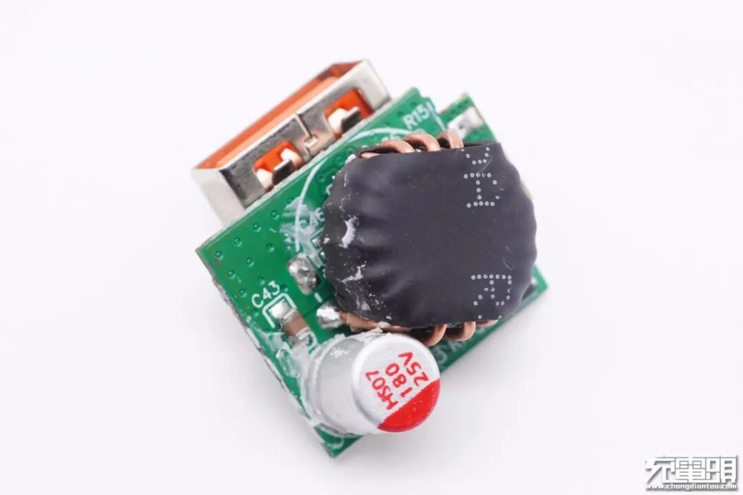 另一面设有降压电感和固态电容,规格为25V 180μF。