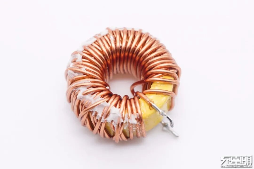 滤波电感特写,黄色磁芯。