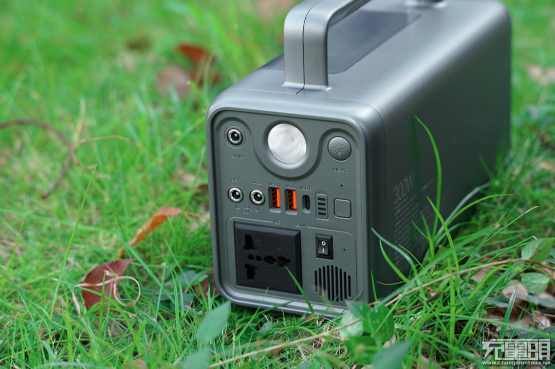 其中300W款带有两个AC输出,两个DC圆口输出,AC接口可供相机、电风扇,果汁机等产品充电,DC圆口可直接连接电灯泡照明。此外还带有3个USB-A接口和1个60W PD输出的USB-C接口,为手机、电脑供电。