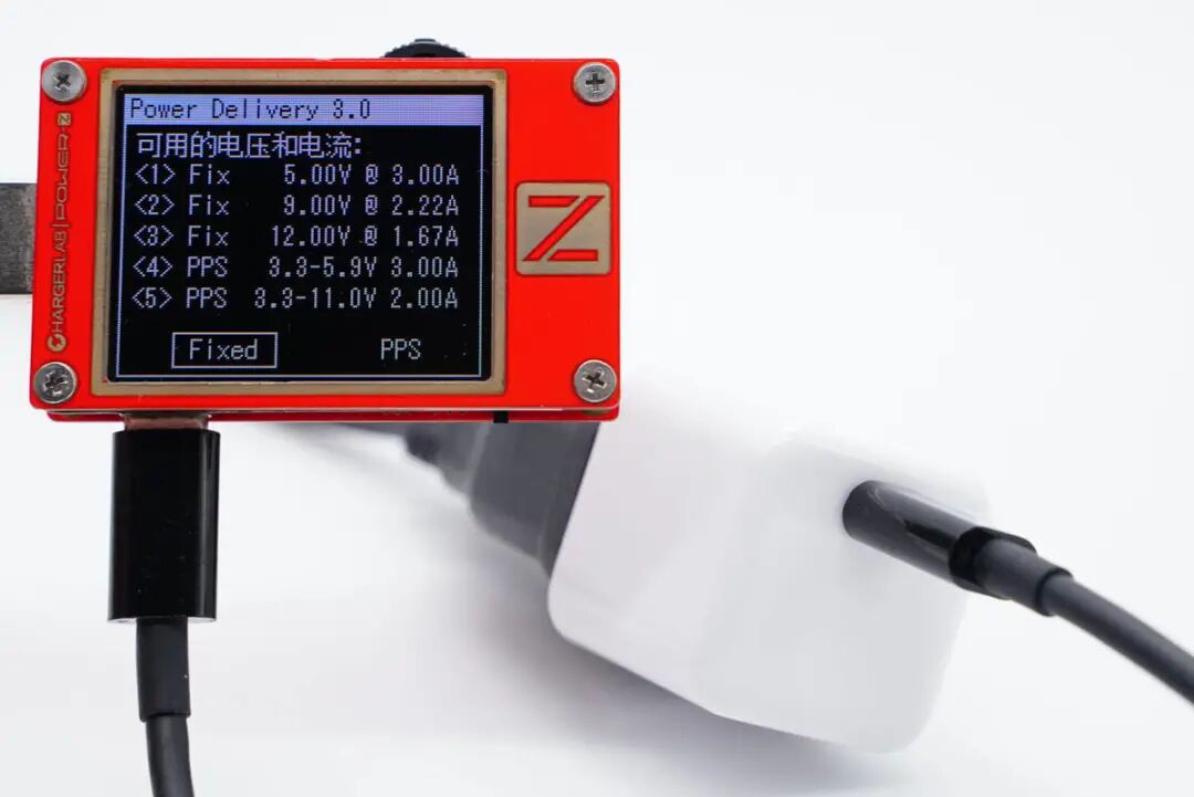 通过POWER-Z KT002 USB测试仪读取PDO报文发现,奥海20W迷你充基于PD3.0快充标准开发,带有5V3A / 9V2.22A / 12V1.67A三个固定电压输出档,另外还包含3.3-5.9V3A / 3.3-11V2A两组PPS电压子集,能更好地握手需求PPS协议的快充设备。
