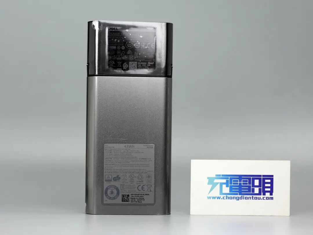 戴尔这款二合一移动电源具备43Wh能量以及45W快充功率,配备USB-A接口,可以为手机、笔记本电脑等设备充电。下面充电头网就对这款产品进行详细拆解,一起来看看其具体的设计与做工。