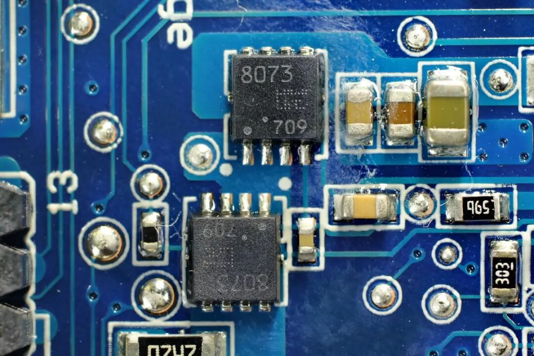 两颗东芝TPC8073 MOS管,用于保护隔离。