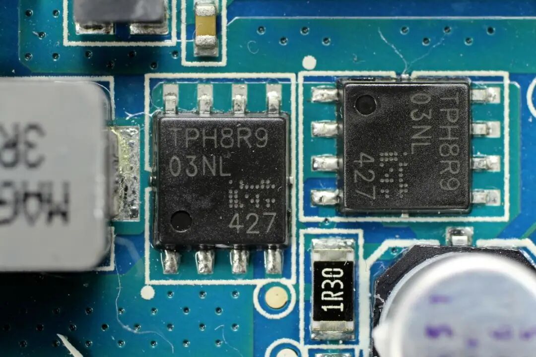 两颗MOS管来自东芝,TPN8R903NL,用于同步整流升压。