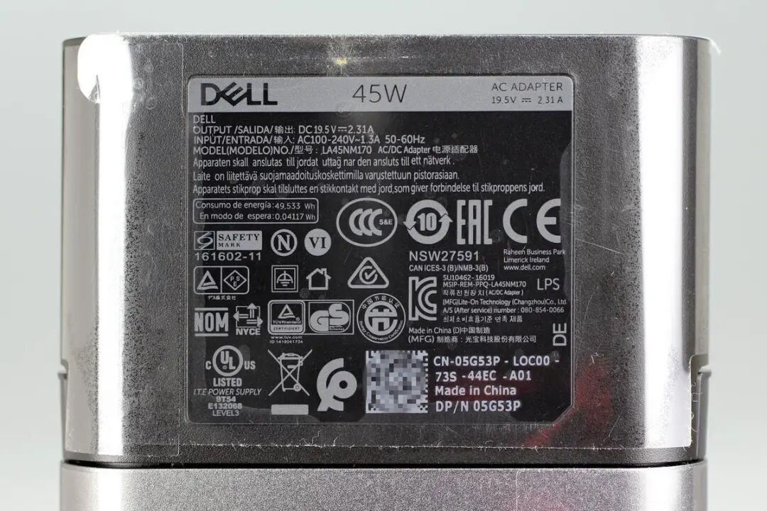 充电器已经通过了CCC、EAC、CE、UL、CP、KC、GS、NOM、PSE、NYCE等多个安规认证以及VI级能效认证,和戴尔的其它电源一样,全球绝大多数国家地区都能使用。
