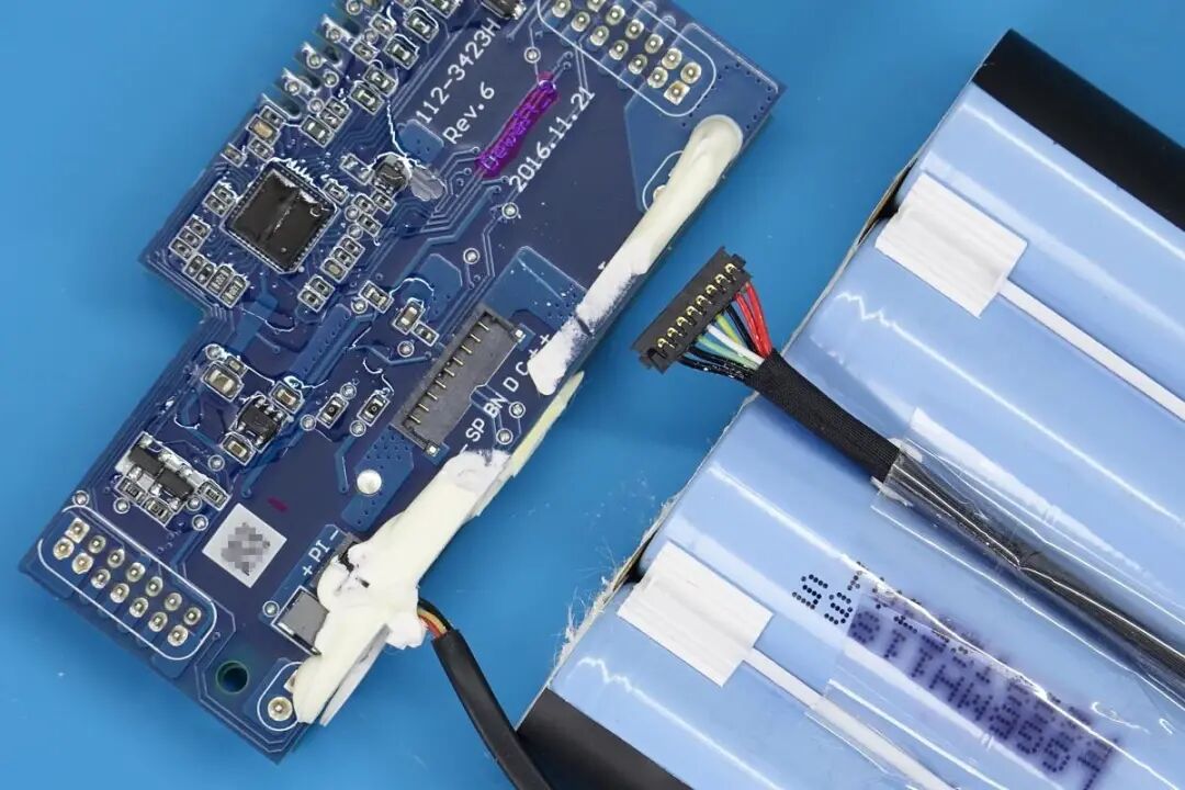 电池组和PCB板通过线缆插拔式连接,组装方便。