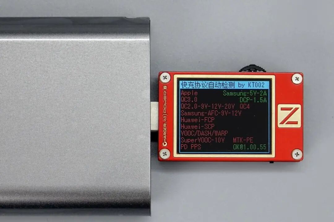 使用ChargerLAB POWER-Z KT002测得USB-A口支持Samsung 5V2A和DCP协议。