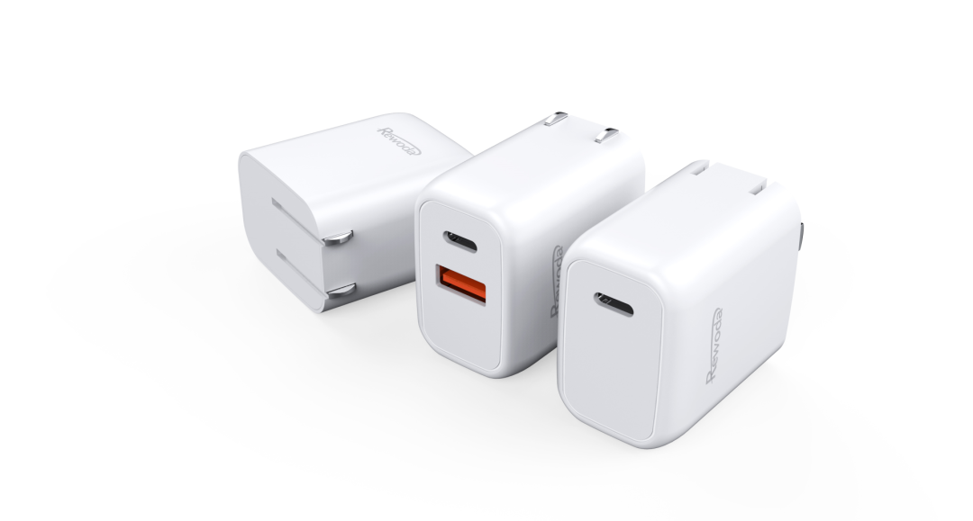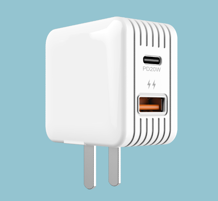 瑞嘉达20W 1A1C快充充电器两个输出口单独使用时均支持20W快充输出,USB-C支持PD快充,USB-A支持多协议快充,并且可以双口同时输出,为两台设备同时充电。采用美规两脚可折叠插脚设计,外带时可收纳至壳体内,避免插脚刮伤其他行李物品。