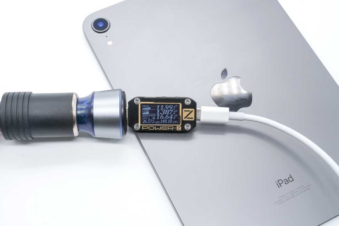 对iPad mini 6充电,握手12V快充电压档,功率11.99V 1.38A 16.64W。