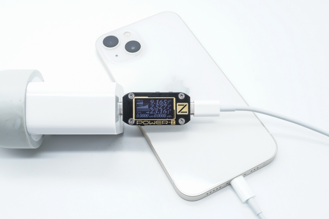 实测对iPhone 13 Pro充电,功率达到9.16V 2.38A 21.84W。