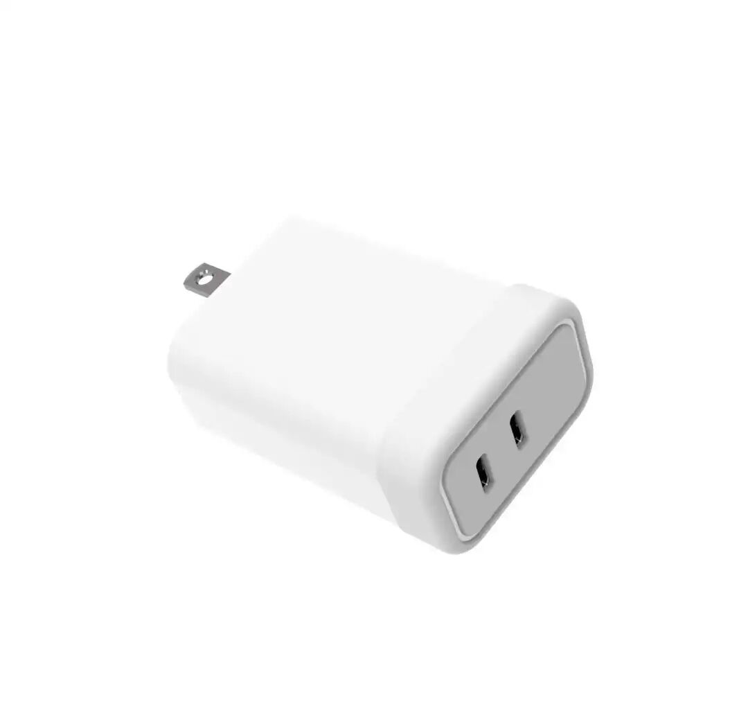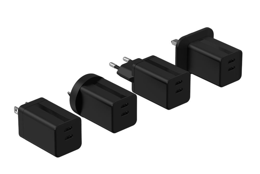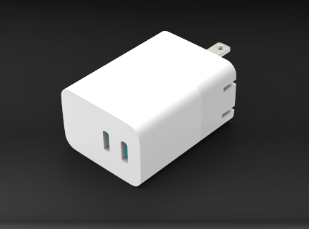 深圳市锦鸿泰科技有限公司推出的这款双USB-C口充电器,最大输出功率为50W,输入端采用折叠插脚设计,收纳起来十分方便,同时也采用了插脚可更换设计,方便客户根据不同国家和地区的市电标准更换插脚。
