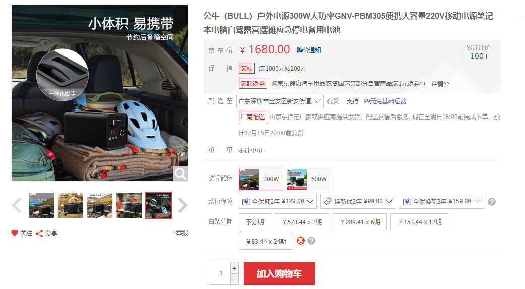 目前百克龙京东旗舰店已经上架了多款户外电源产品,并根据使用场景的推出了多种随机配件,例如太阳能充电板和汽车补电线。