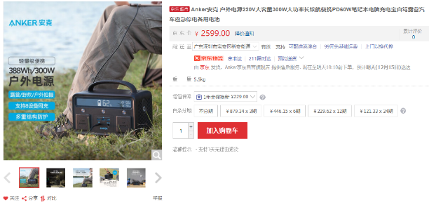 Anker安克是安克创新科技股份有限公司旗下的智能充电品牌,成立10年来在快充领域发展的颇具规模,同时也推出了很多脍炙人口的产品,受到了国内外消费者的一致好评。目前ANKER已经在京东上架了一款300W电源产品,容量388.8Wh。