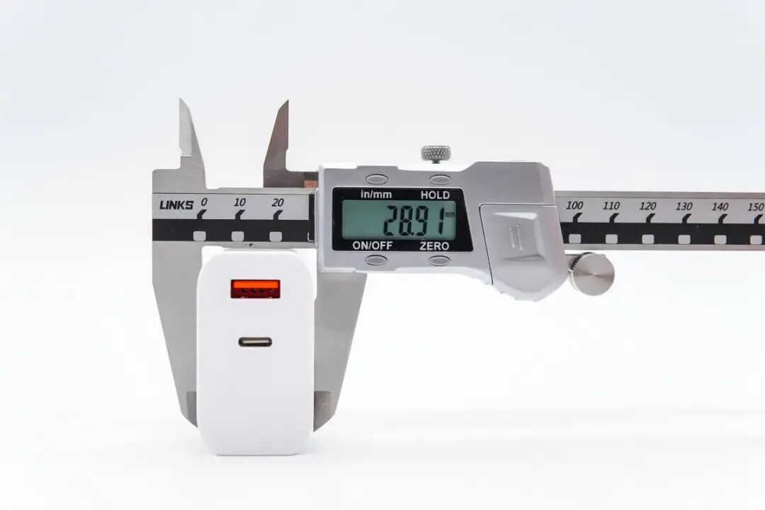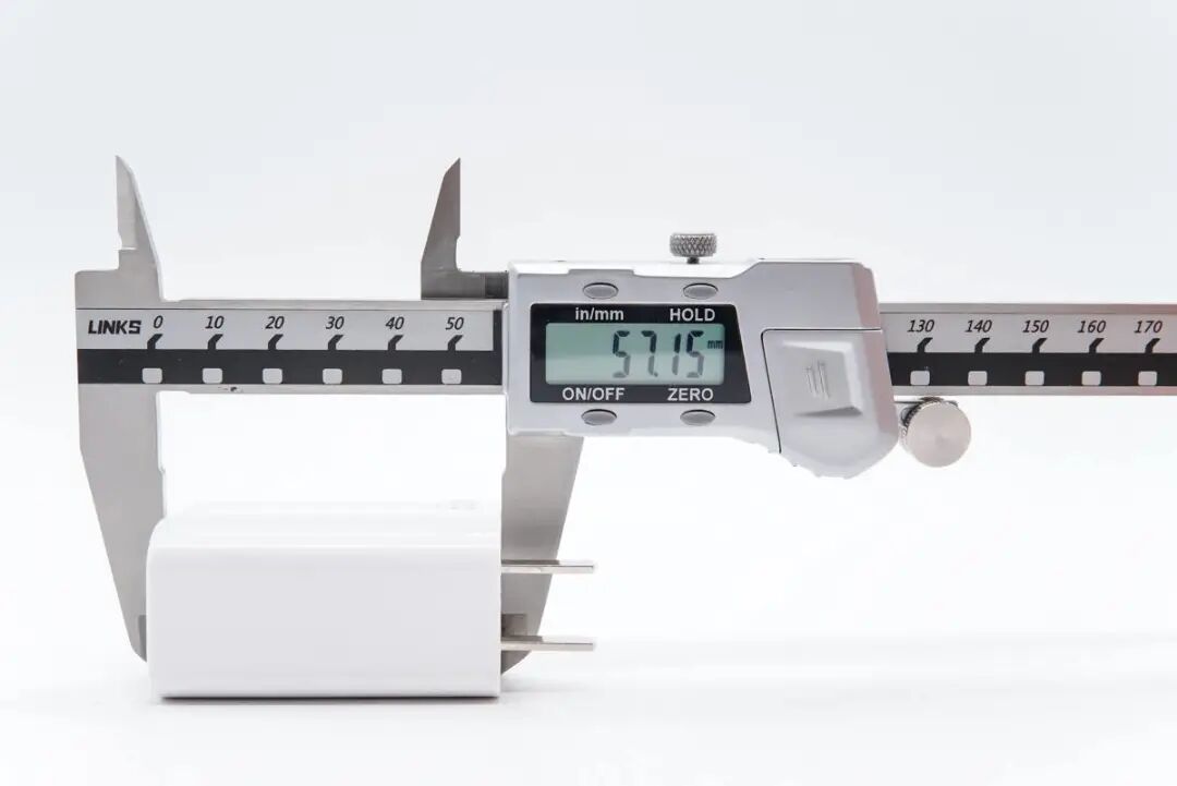 宽度约为28.91mm,充电器的尺寸约为 57.15×50.86×28.91mm,充电器的体积约84.03cm³,以充电器功率65W计算,功率密度约为0.77W/cm³。
