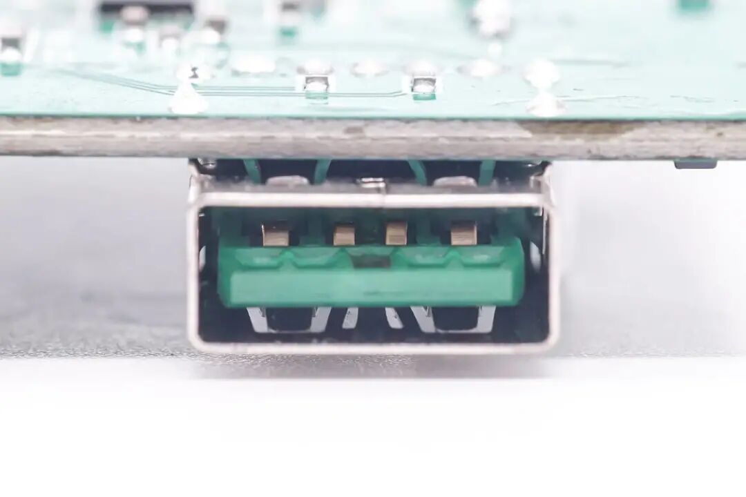 USB-A母座带有辅助引脚,支持低压大电流快充。