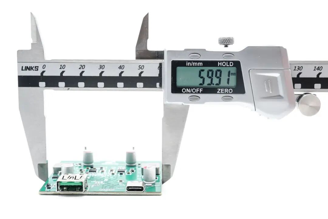 厚度约为11.2mm,主要是电路板上的固态电容高度,若使用贴片聚合物电容代替,能够显著降低电路板整体厚度,适配更多应用场合。