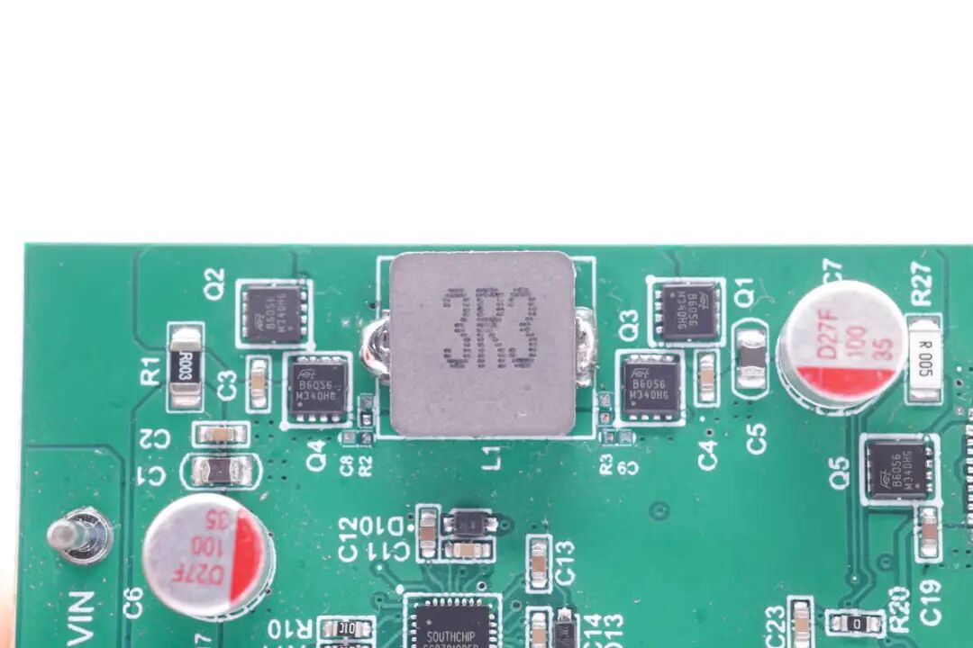 通过正面可以看到这款双口参考设计使用了两路独立的升降压电路,对应两个输出接口,可实现独立的快充输出。
