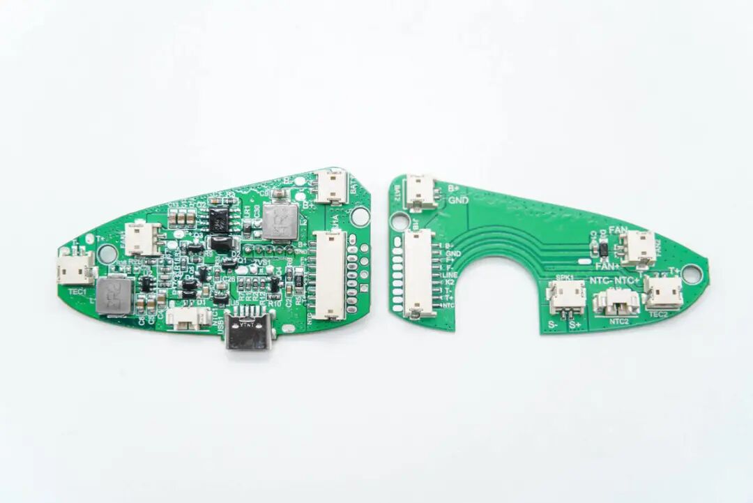 控制板使用和泰HT45F5N单片机用于电池充放电管理和整机功能控制,搭配钰泰ETA3499进行降压控制TEC制冷片功率,并使用晶致AM2837控制制冷片供电,控制制冷和发热。外壳内部设有大面积散热片和导风板,充分利用风扇风力,散热高效且静音。