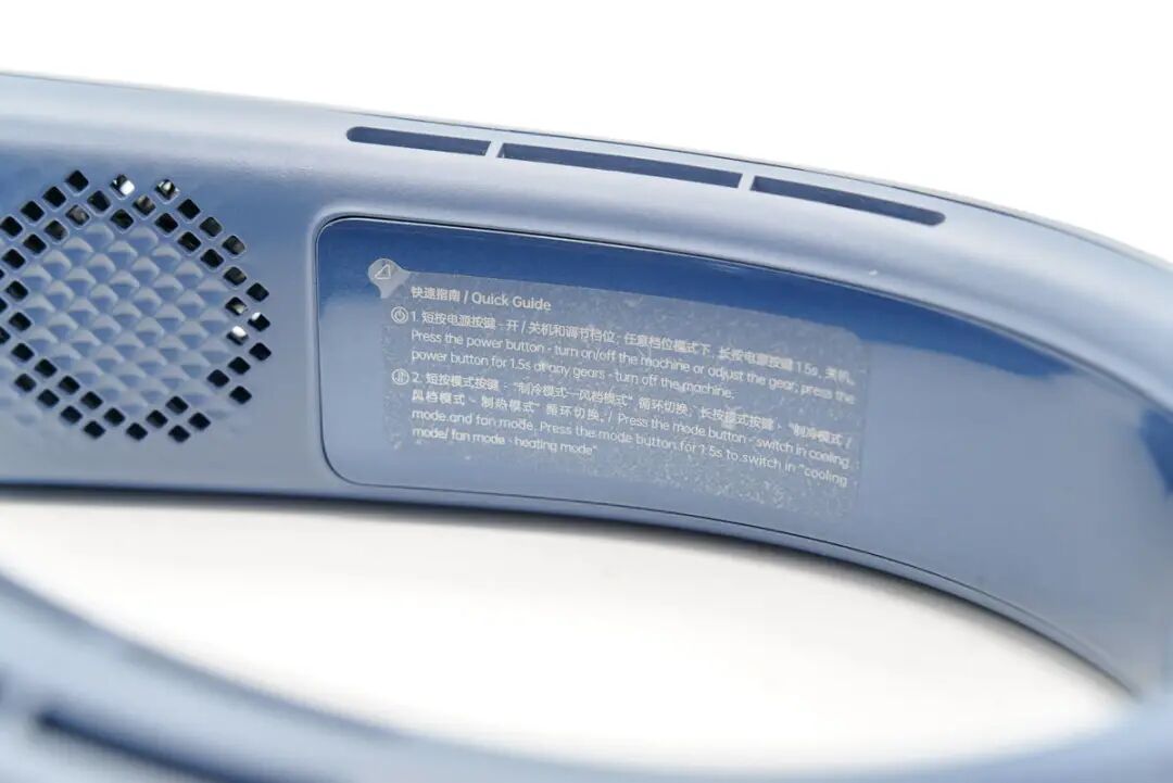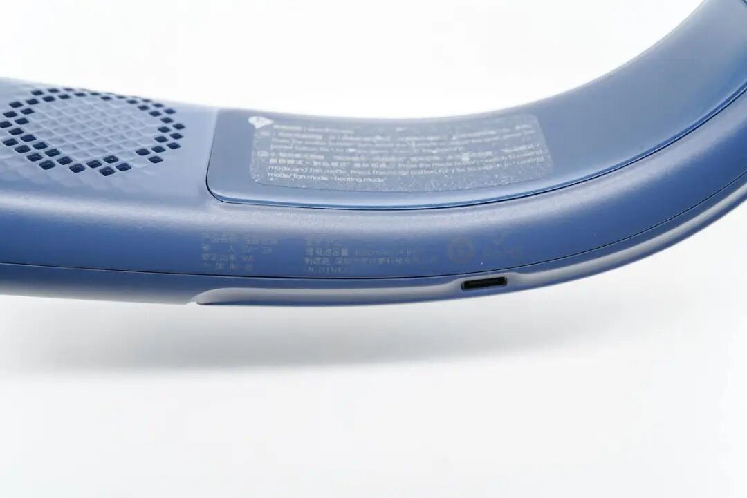 此外两侧还设有功能键,其中一侧是电源线,控制挂脖空调的开关。
