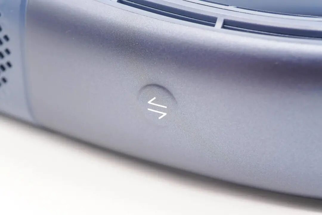 壳体垂直开孔为出风开孔,圆形开孔为进气孔,外壳侧面有一个模式按钮连杆。