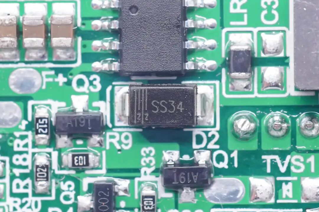 与PMOS并联的SS34肖特基二极管,用于提升升压效率。