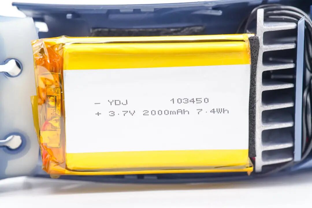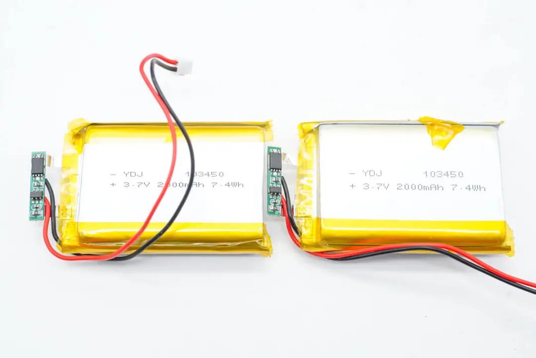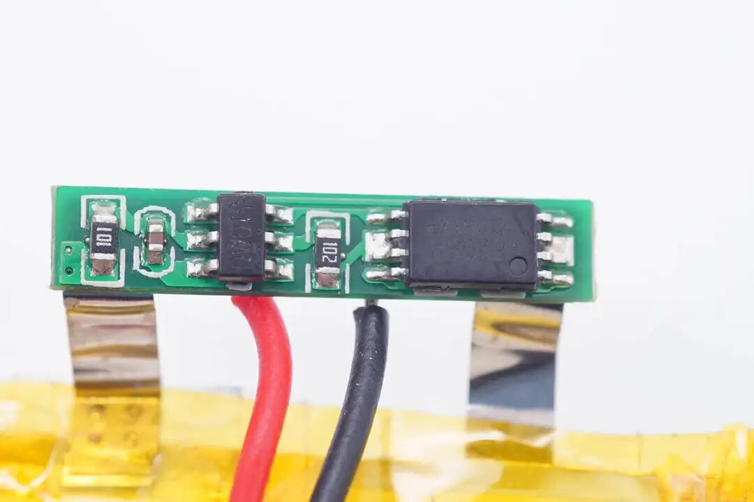 两颗电池特写,电池均焊接保护板用于过充,过放以及过流保护。