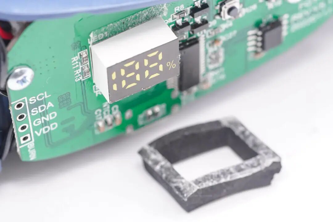 接着拆解右侧的壳体,下面隐藏数码管用于电量显示。
