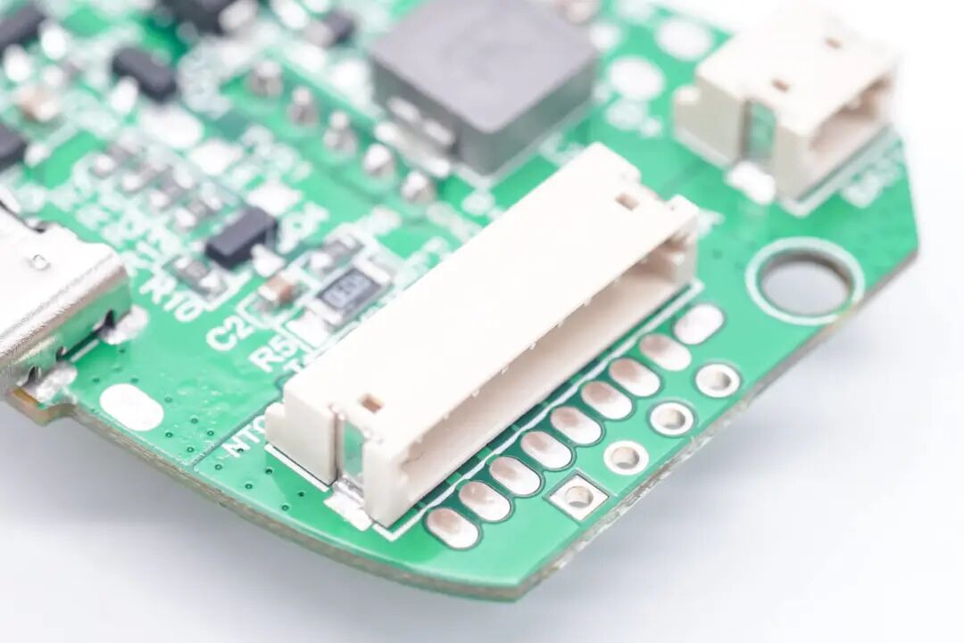 切换工作模式的贴片按键。对应各个连接器的测试点,便于产品测试。