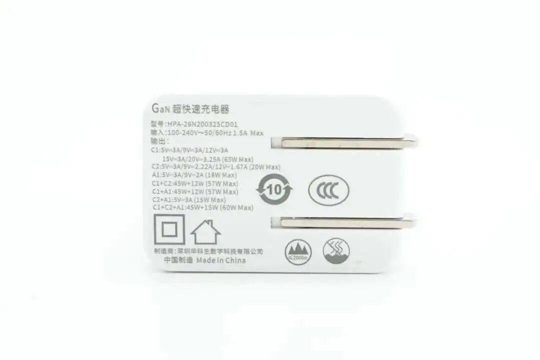 经过多年数码设备接口迭代,USB PD快速充电技术已全面普及,快充配件市场也在持续增长,在功率选择上,很多客户倾向于选择65W这个黄金功率段,上可以充笔记本、平板,下可以充手机耳机,性价比也十分突出,让65W大功率快充持续热销。近期,华科生推出了一款65W 2C1A三口氮化镓充电器,采用时下热门柱状造型设计,外壳通体白色,表面磨砂抗指纹,腰身各面洁白,可方便客户进行差异化设计,整体风格简约。输出端设有2C1A三个USB接口,均为黑色胶芯,接口旁还印有区别标识方便使用。华科生65W 2C1A三口氮化镓充电器配备可折叠国标插脚,携带方便且不会刮伤包里其它设备。充电器尺寸仅为 63.79x41.62x29.7mm,体积十分小巧。充电器支持单口65W输出,并支持5A PPS快充,兼顾笔记本电脑充电和安卓手机快充。东科 DK065G 极大的简化了反激式 AC-DC 转换器的设计和制造,尤其是需要高转化效率和高功率密度的产品。DK065G 具备完善的保护功能:输出过压保护(OVP),VCC 过欠压保护,过温保护(OTP),开环保护,输出过流保护(OCP)等。东科 DK065G 采用DFN8*8封装,待机功耗低于50mW,采用谷底开通以降低开关损耗,内置高低压输入功率补偿电路,保证高低压下最大输出功率一致,适用于PD快充,电源适配器等应用。同步整流芯片同样来自东科半导体,丝印 100R10M,实际型号为 DK5V100R10M,是一款零外围的同步整流芯片,内置100V耐压,10mΩ导阻的同步整流管,支持CCM,DCM和QR工作模式,可直接替代肖特基二极管,提升电源转换效率。东科 DK5V100R10M 仅有A,K两个引脚,分别对应肖特基二极管的P,N脚。芯片内部集成了100V 功率NMOS 管,可以大幅降低二极管导通损耗,提高整机效率,取代或替换目前市场上等规的肖特基整流二极管。华科生65W 2C1A氮化镓快充采用白色长条状外壳,便于携带使用。充电器USB-C1支持65W输出,并支持5A PPS快充输出,对于安卓手机的快充支持较好,USB-C2与USB-A口支持20W输出,可以满足苹果手机的快充需求。双口同时输出时为45+12W功率分配,可为手机及笔记本同时充电。华科生这款充电器采用东科半导体的快充电源方案,为DK065G合封氮化镓芯片搭配同步整流芯片组成,外围元件非常精简。充电器内部使用多块PCB组合焊接,提高空间利用率,设计紧凑,搭配高集成电源方案,大大简化了设计。![]()